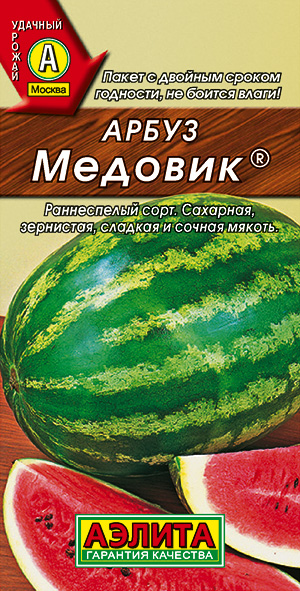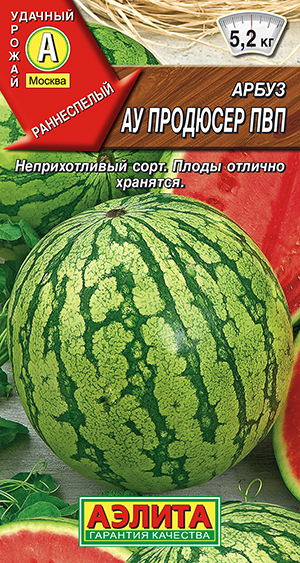 16.95 руб.Скороспелый сорт. Первые плоды снимают спустя 75-85 дней от полных всходов. Растения плетистые, главная плеть средней длины. Плоды округлые, выровненные, массой 3-5 кг (в южных регионах при хорошей агротехнике могут вырастать до 10 кг). Сладкая, сочная, ароматная красная мякоть отлично утоляет жажду. Кора тонкая, семена мелкие. После съема плоды можно хранить (без потери вкуса и аромата) до 30 дней. Сорт устойчив к основным болезням культуры – антракнозу и фузариозному увяданию.