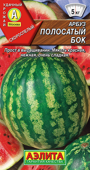 13.94 руб.Один из самых популярных среднеспелых и урожайных сортов. От всходов до первого сбора урожая 70-80 дней. Растение среднеплетистое, с крупными (5-6 кг) округлыми плодами, зелеными с темными полосами. Мякоть красная, сочная, нежная и сладкая, вкус превосходный. Сорт устойчив к антракнозу.