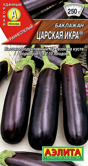 Урожайный, раннеспелый гибрид. Период от всходов до начала сбора плодов 105-115 дней. Кусты, высотой 70-80 см, усыпаны красивыми темно-фиолетовыми плодами. Баклажаны, средней массой 250-300 г, плотные, с нежной мякотью, без горечи. Отлично подходят для кулинарии, консервирования и приготовления икры. Гибрид характеризуется стабильным плодоношением в условиях открытого грунта на протяжении всего сезона. Урожайность 5-6 кг/м2.