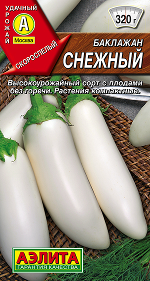 16.95 руб.Скороспелый сорт с красивыми, вкусными, белоснежными плодами. Вступает в плодоношение спустя 100-110 дней от массовых всходов. Формирует полураскидистые растения высотой 90-100 см. Плоды цилиндрические, длиной около 20 см, ? 7-8 см, массой 200-350 г. Шипы на чашечке редкие. Мякоть белая, с незначительным количеством семян. Не горчит, поскольку практически лишена соланина. Плоды используются в домашней кулинарии, для приготовления икры, консервирования и маринования. Товарная урожайность в теплице – 8-8,5 кг/м2.