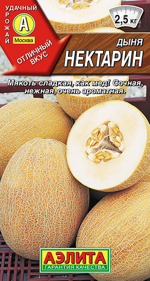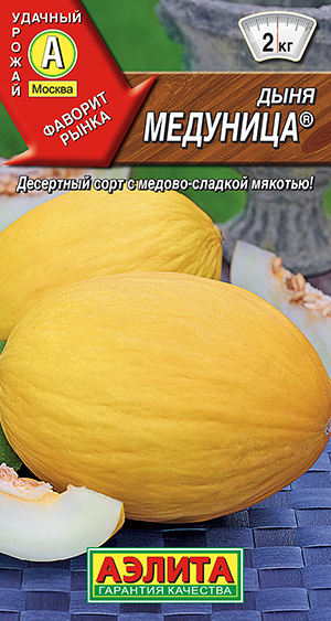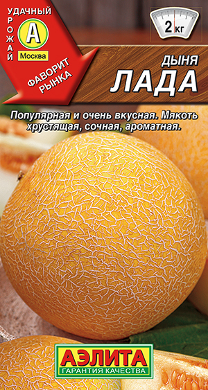 Скороспелый сорт для открытого грунта и теплиц. Позволяет получать стабильную урожайность даже в условиях средней полосы. Растения длинноплетистые, крепкие. Созревание плодов наступает через 60-65 дней после появления всходов. Средняя масса дыни 2-2,5 кг. Мякоть светло-кремовая, толстая, сладкая, сочная и очень ароматная. Продукция отличных вкусовых и товарных качеств. Плоды длительно хранятся и хорошо транспортируются, не утрачивая своих свойств. Устойчив к заболеваниям культуры. -
