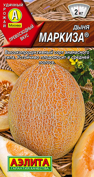 22.1 руб.Высокопродуктивный сорт ананасного типа. Среднеспелый, срок созревания первых плодов 90-95 дней. Имеет хорошую по левую устойчивость к комплексу болезней и стабильно плодоносит в средней полосе. Формирует плети длиной около 2 м. Плоды овальные, со сплошным сетчатым рисунком, массой 1,5-2 кг. Мякоть белая, хрустящая, сочная, ароматная, сладкая, деликатесного вкуса. Рекомендуется использовать в свежем виде как десерт, для приготовления повидла и цукатов. Плоды сохраняют товарные качества в течение 20-30 дней после съема.Оригинатор ООО “Агрофирма АЭЛИТА“