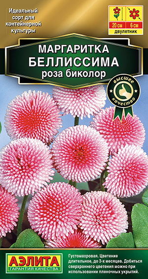 20.55 руб.Очаровательные помпоны махровых и полумахровых соцветий диаметром 2-4 см радуют глаз с мая по июль. Растение многолетнее, выращивается в большинстве регионов страны как двулетнее. В первый год образует розетки листьев, на второй – формирует цветоносы высотой до 15 см. Миниатюрные маргаритки – это эффектное украшение для клумб, бордюров, горшков и балконных ящиков. В жарком климате лучше выращивать в тени, под деревьями. В кулинарии цветки используют для украшения блюд, лепестками посыпают салаты.