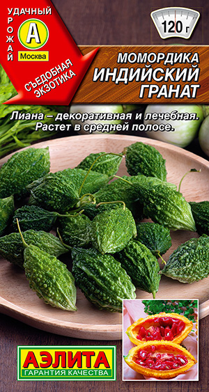 34.35 руб.Экзотическая гостья из тропических лесов – момордика, известная садоводам как «индийский гранат», «китайская тыква» – однолетняя, травянистая лиана. Длина тонких, но очень прочных побегов достигает 2,5-4 м. Она потрясающе декоративна: неповторимые резные листья, душистые желтые цветки с тонким ароматом жасмина и необыкновенные плоды массой 100-120 г, длиной до 18-20 см, по вкусу напоминающие сочную тыкву. Спелый плод раскрывается, словно цветок, обнажая до 30 крупных «гранатовых» ягод, содержащих семена. Первые темно-зеленые плоды можно собирать на 8-10 день после образования завязей. Растение полностью лечебно: плоды, стебли, листья – нескончаемый источник целого комплекса полезных веществ. Плоды солят, маринуют, варят, жарят, добавляют в супы, закуски, приправы. Неповторимая лиана украсит беседки, арки, стены, заборы.