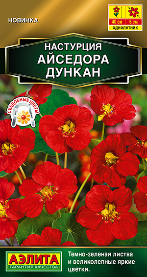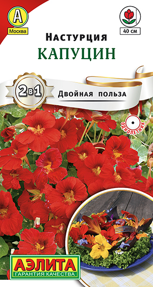21.25 руб.Сорт с ярко-красными цветками, которые эффектно выделяются на фоне темно-зеленой листвы. Куст низкорослый, крепкий, с большим количеством побегов. Высота* взрослого растения в открытом грунте до 40 см. Цветки диаметром 5-7 см располагаются над листвой. Растения используют для цветников, бордюров, вазонов и кашпо. Все части, кроме корней, съедобны – цветами украшают салаты, листья добавляют в холодные закуски.