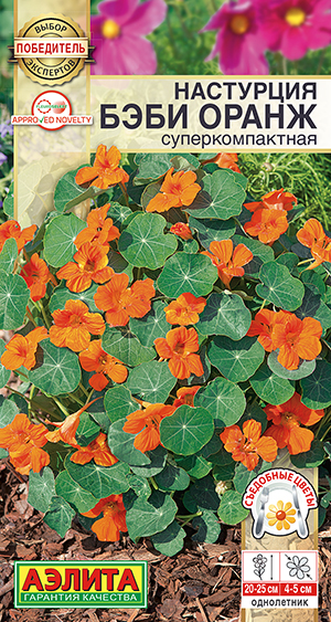35.75 руб.Новая и чрезвычайно компактная настурция. Порадует обильным цветением и благодаря оранжевым цветкам и контрастной темно-зеленой листве, станет ярким акцентом в вашем саду. Летник отмечен международной организацией производителей цветочных семян FLEUROSELECT за выдающиеся декоративные и технологические качества. Куст прямостоячий, высотой и шириной до 20-25 см. Цветки, ? 4-5 см, расположены над листвой. Сорт отлично подойдет для бордюров, рабаток, вазонов и декоративного оформления балконов.
