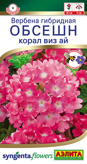 Роскошная серия ароматного летника иностранной селекции. Широкая гамма ярких окрасок теперь доступна не только в результате черенкования побегов, но и при размножении семенами. От большинства известных сортов вербены «Obsession» отличается ранним началом цветения, максимальной его продолжительностью и крупным диаметром соцветий (7-9 см). Растения характеризуются сильным ветвлением и высокой однородностью. Высота кус тиков около 15-20 см, ширина – до 30 см. Они прекрасно растут и великолепно смотрятся в садовых цветниках, вазонах, кашпо, балконных контейнерах.