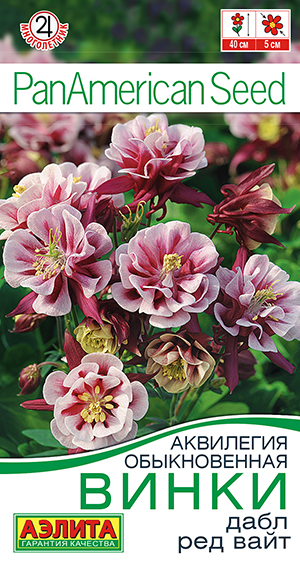 Превосходная аквилегия американской селекции. Чудесные двухцветные махровые соцветия достигают диаметра 4-5 см, они направлены вверх, что является редкостью для сортов этой культуры. Новые бутоны появляются непрерывно, поэтому каждое растение (высотой 30-40 см) выглядит очень привлекательно и напоминает пышный букет. Сорт пре красно смотрится в центральных садовых клумбах около дома или беседки. Компактные кустики следует высаживать группами, предпочтение стоит отдать полутенистым местам. Максимальная декоративность наблюдается на второй год вегетации.