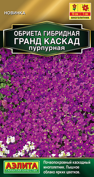 24.7 руб.Серия красивоцветущей* каскадной обриеты. Это прекрасная почвопокровная многолетняя культура для создания бордюров, украшения каменистых горок и подпорных стенок в саду. Растения высотой около 10 см, диаметром до 40-50 см, зимостойкие. Быстро восстанавливают декоративный облик весной после схода снега и зацветают в мае пышным ковром ярких цветков ? 1 см. Обриета незаменима на каждом участке, потому что пик ее цветения приходится на межсезонье (конец весны), когда отцвели первоцветы, а большинство однолетников и многолетников только формируют бутоны.