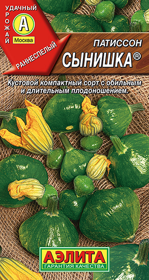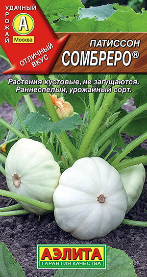 7.8 руб.Раннеспелый кустовой сорт с белыми плодами. Созревает на 8-10 дней раньше других сортов (на 35-39 день). Сорт хорошо завязывает плоды длительное время. Патиссончики ? 5-7 см используют для цельноплодного консервирования, более крупные, массой 200-400 г,- как горшочки для запекания. Урожайность – 5-6 кг/м2.