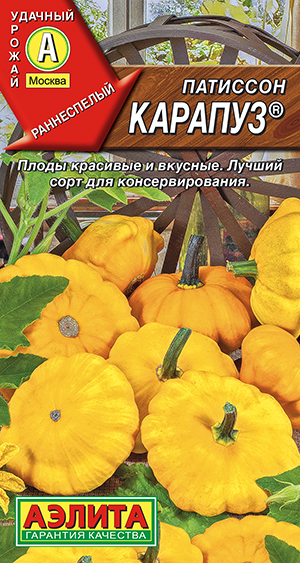 16.95 руб.Раннеспелый кустовой сорт с длительной отдачей урожая. Первые плоды снимают на 40-45 день после всходов. Растения компактные, формируют большое количество завязей. Плоды массой 80-340 г, с тонкой кожицей, плотной и нежной мякотью. Для консервирования собирают молодые патиссоны диаметром 6-9 см, которые по вкусу получаются даже лучше, чем маринованные огурцы. Плоды большего диаметра (10-14 см) превосходят кабачки при аналогичном приготовлении. Сорт устойчив к болезням культуры, хорошо транспортируется. Урожайность высокая — более 5 кг/м2.Оригинатор ООО “Агрофирма АЭЛИТА“