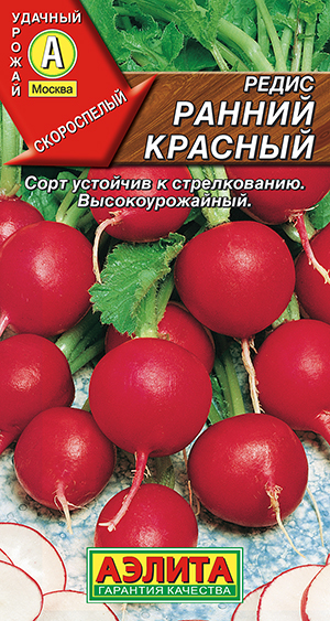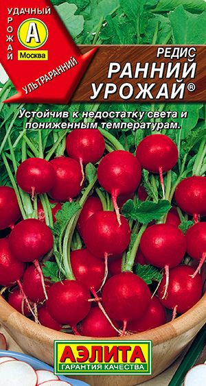 17.45 руб.Ультраскороспелый сорт для получения ранней продукции в открытом грунте, парниках, необогреваемых пленочных теплицах. Хорошо переносит недостаток освещения, пригоден для зимнего выращивания в стеклянных теплицах. Массовый урожай поспевает за 18-20 дней от всходов. Корнеплоды первой выборки можно будет подать к столу уже через 16 дней. Корнеплоды округлые, ярко-красные, массой 11-15 г. Мякоть белая, очень нежная, сочная. Вкусовые качества отличные. Урожайность 1,2-1,5 кг/м2. Сорт отличается высокой товарностью. Не проявляет склонности к стрелкованию.