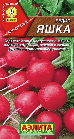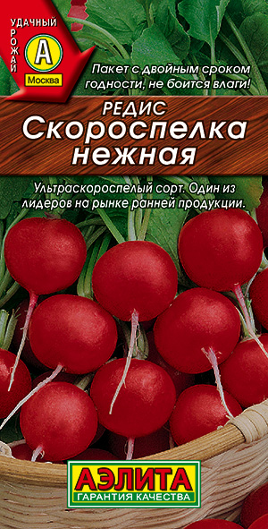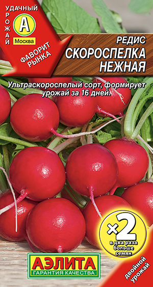17.45 руб.Ультраскороспелый сорт, формирующий полноценный урожай за короткий период – 18-20 дней от всходов. Корнеплоды массой 15-20 г. Вкусовые качества отличные. Сорт отличается дружной отдачей урожая, дает прекрасные результаты при очень раннем посеве. Корнеплоды, упакованные в пленку, хранятся в бытовом холодильнике 3-4 недели без потери потребительских качеств. Урожайность – до 4 кг/м2.