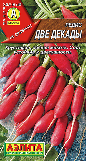 17.45 руб.Ультраскороспелый. Первую партию урожая можно собрать на 16 день от всходов. Гибрид устойчив к стрелкованию и рекомендуется для повторных посевов в О/Г и круглогодичного выращивания в теплицах (выносит пониженную освещенность). Корнеплоды массой 15-20 г, с белоснежной плотной мякотью остро-сладкого вкуса. Урожайность около 2 кг/м 2 .