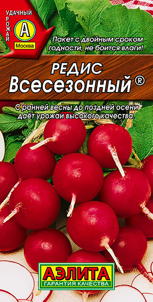 17.45 руб.Раннеспелый, урожайный сорт. От всходов до уборки 14-18 дней. Для выращивания сверхранней продукции в открытом и защищенном грунте. С первой декады апреля можно сеять в теплицы, с третьей декады – в О/Г. Корнеплоды выравненные, массой 20-30 г. Мякоть плотная, сочная, хрустящая, сладковато-острого вкуса, долго не дряблеет. Сорт устойчив к цветушности. Урожайность 2-2,5 кг/м 2 .