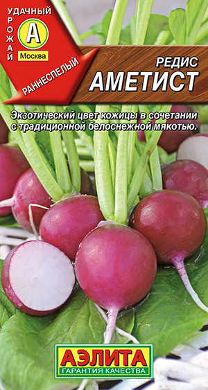 17.45 руб.Сорт будет интересен не только любителям нового и необычного. Под экзотической окраской скрывается традиционная белоснежная мякоть, плотная, сочная и в меру острая. Интенсивная окраска приятно «разнообразит» цвет салатов. Похрустеть пурпурно-фиолетовыми корнеплодами можно через 20-25 дней от появления всходов. Урожай формируется дружно, корнеплоды ровные, средней массой 20 г. Сорт устойчив к раннему стрелкованию; хорошо адаптируется в различных условиях; не слишком требователен к освещенности и может выращиваться в кассетной технологии на балконе. Осенний урожай хранится около 2 месяцев.