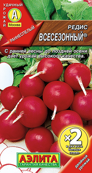 18.65 руб.Фаворит для дачников. Ультраскороспелый. Хрустящим урожаем из-под пленки можно лакомиться уже через 16 дней от всходов. Растет быстро и дружно. Корнеплоды ровные, насыщенно- красного цвета. Мякоть белая, сочная, вкусная. Сорт устойчив к стрелкованию и практически не поражается болезнями. Можно выращивать на протяжении почти всего сезона. Урожайность на высоком уровне – до 3 кг с 1 м 2 .