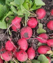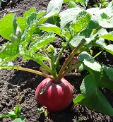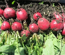 Скороспелый – формирует урожай за 3 недели от всходов. Розетка листьев небольшая, компактная. Корнеплоды темно-красные, округлые, плотные, массой 15-25 г. Мякоть белая и сочная, вкус слабоострый со сладостью, освежающий. Товарная урожайность 1,5-2 кг/м 2 . Сорт устойчив к раннему стеблеванию, относительно устойчив к болезням.