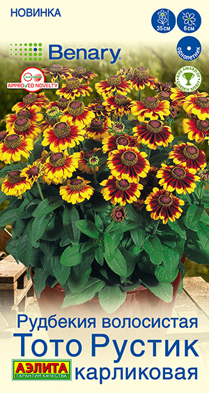 Очень красивая раннецветущая рудбекия. Отличается от большинства сортов компактной формой сомкнутого куста. Отмечена международными наградами за великолепные декоративные качества. Выращивается рассадным способом для получения максимально интенсивного цветения уже в 1-й год. Реже возделывается в качестве двулетника. Растение высотой около 30-35 см, прекрасно ветвится. Побеги крепкие и устойчивые, не нуждаются в подвязке даже после дождей. Цветки красочные, диаметром 5-6 см, при соблюдении агротехники первые из них распускаются в июне. Сорт великолепен в бордюрной и горшечной культуре