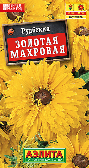 Один из самых популярных и красивых сортов рудбекии! Это однолетник, отмеченный международной организацией производителей цветочных семян FLEUROSELECT за выдающиеся декоративные и технологические качества. Растение формирует кустик высотой 50-60 см, на котором образуется огромное количество роскошных крупных цветков ? 8-10 см. Золотисто-желтый оттенок махровых и полумахровых цветов сохраняется в течение всего периода цветения с июля до заморозков. Рудбекия Златовласка идеально подходит для создания яркого акцента в клумбах и цветниках. Дает отличную срезку.
