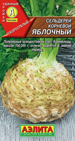 Надежный среднеспелый сорт корневого сельдерея. Отличается эталонным качеством продукции: ароматичность, урожайность, товарность – на вы соте. Период от всходов до наступления потребительской спелости 140-160 дней. Розетка листьев компактная, средней высоты (30-40 см). Корнеплод крупный, округлый, с белой мякотью отличных вкусовых качеств. Средняя масса 200-250 г. Благодаря низкой калорийности и содержанию комплекса полезных веществ, сорт широко при меняется в кулинарии в салатах, супах, заправках, блюдах из курицы, рыбы и морепродуктов. Подходит для маринования и заготовки сухих приправ.