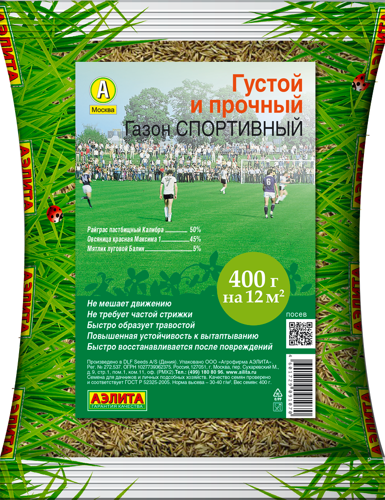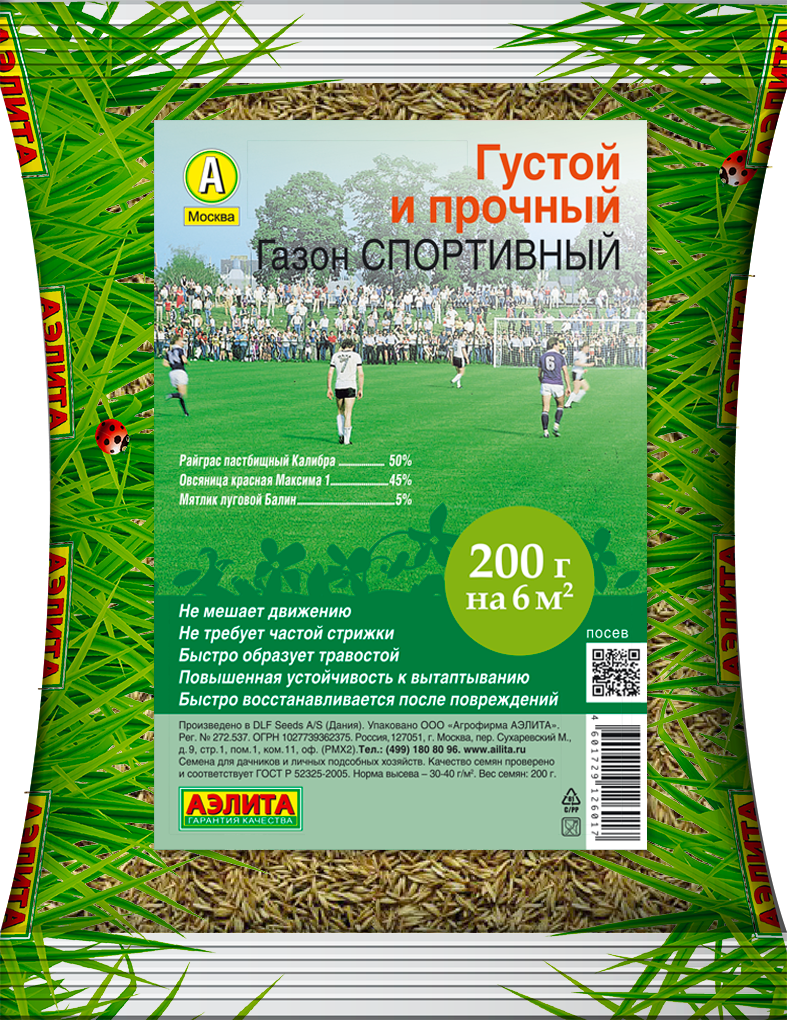 700 руб.Газон СПОРТИВНЫЙ – многолетняя травосмесь от ведущей мировой компании по производству семян клевера и трав DLFSeedsA/S (Дания). Быстро образует густой, ровный травостой и достаточно прочную дернину. Обладает повышенной устойчивостью к вытаптыванию и механическим повреждениям. Травяное покрытие не требует частой стрижки, не скользит и не мешает движению. Идеально подходит для создания теннисных кортов, спортивных и детских площадок.