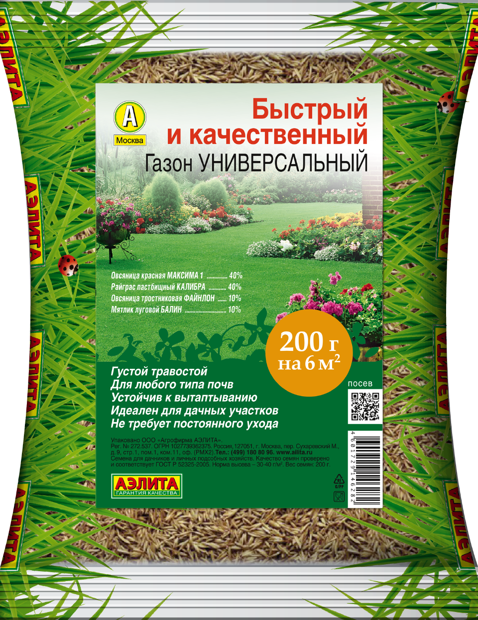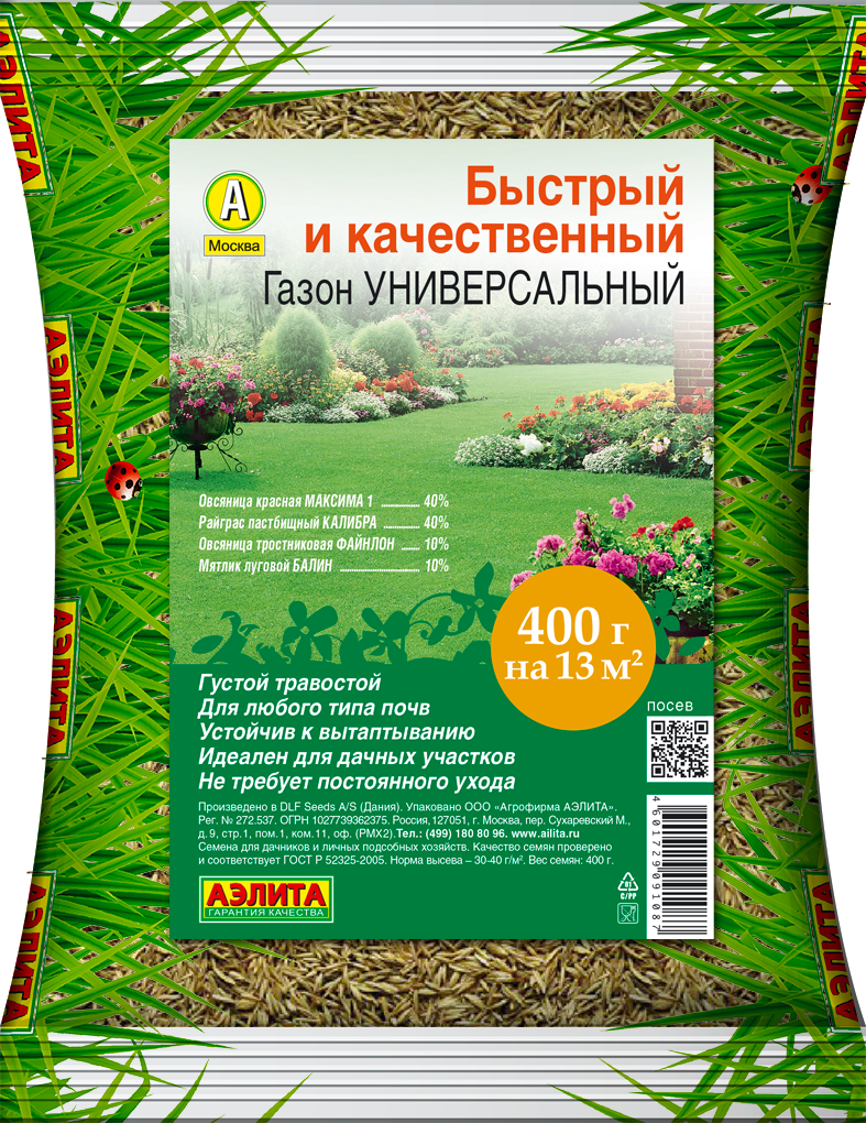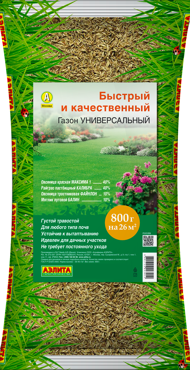 700 руб.Газон УНИВЕРСАЛЬНЫЙ – многолетняя травосмесь от ведущей мировой компании по производству семян клевера и трав DLF Seeds A/S (Дания). Обеспечивает быстрое формирование высококачественного газона с густым, декоративным травостоем на любом типе почв. Отличается устойчивостью к вытаптыванию и неблагоприятным погодным условиям. Не требует постоянного ухода. Идеально подходит для загородных и дачных участков.