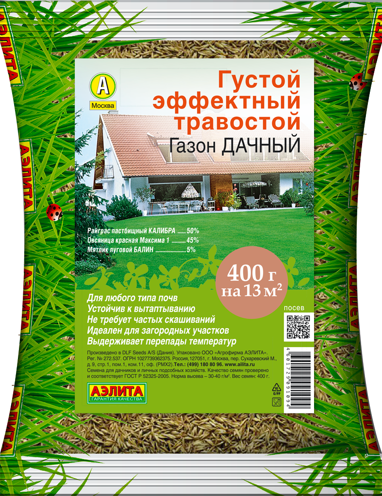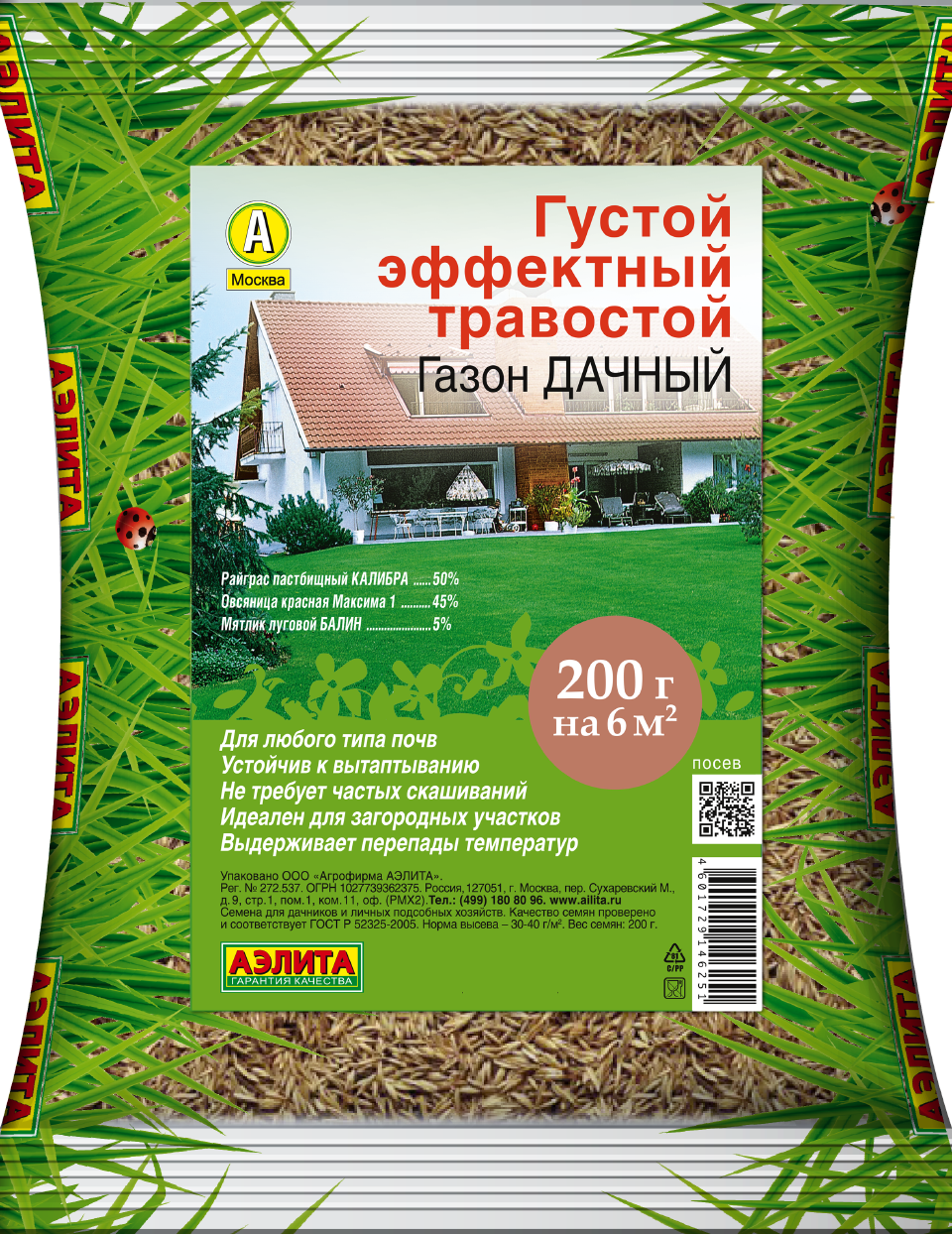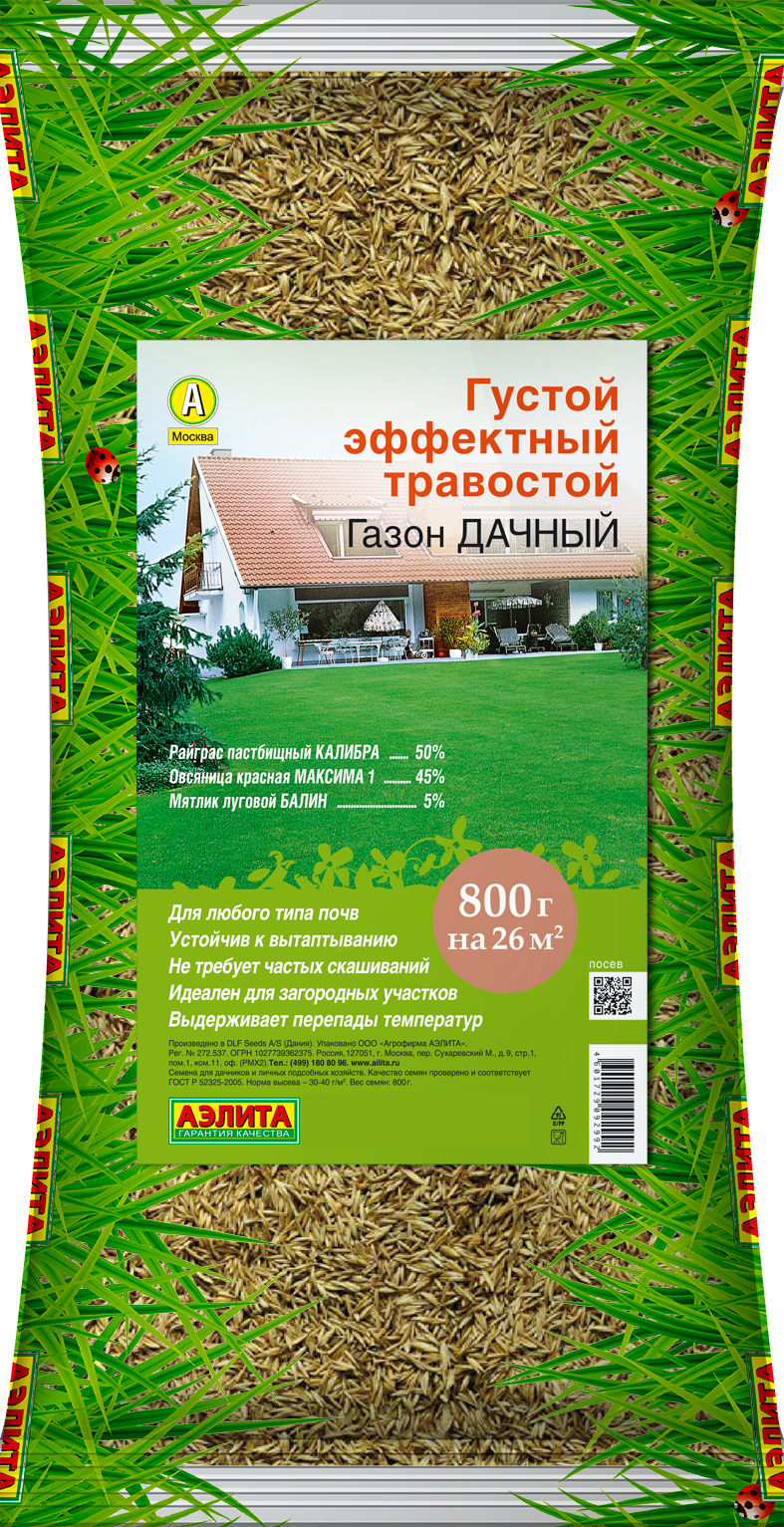 700 руб.Газон ДАЧНЫЙ – многолетняя травосмесь от ведущей мировой компании по производству семян клевера и трав DLF Seeds A/S (Дания). Cпособна быстро создать красивый зеленый ковер с густым и эффектным травостоем. Обладает устойчивостью к вытаптыванию и механическим повреждениям. Выдерживает перепады температур. Медленно отрастает после стрижки. Отлично подходит для дачных и загородных участков, парков и скверов.