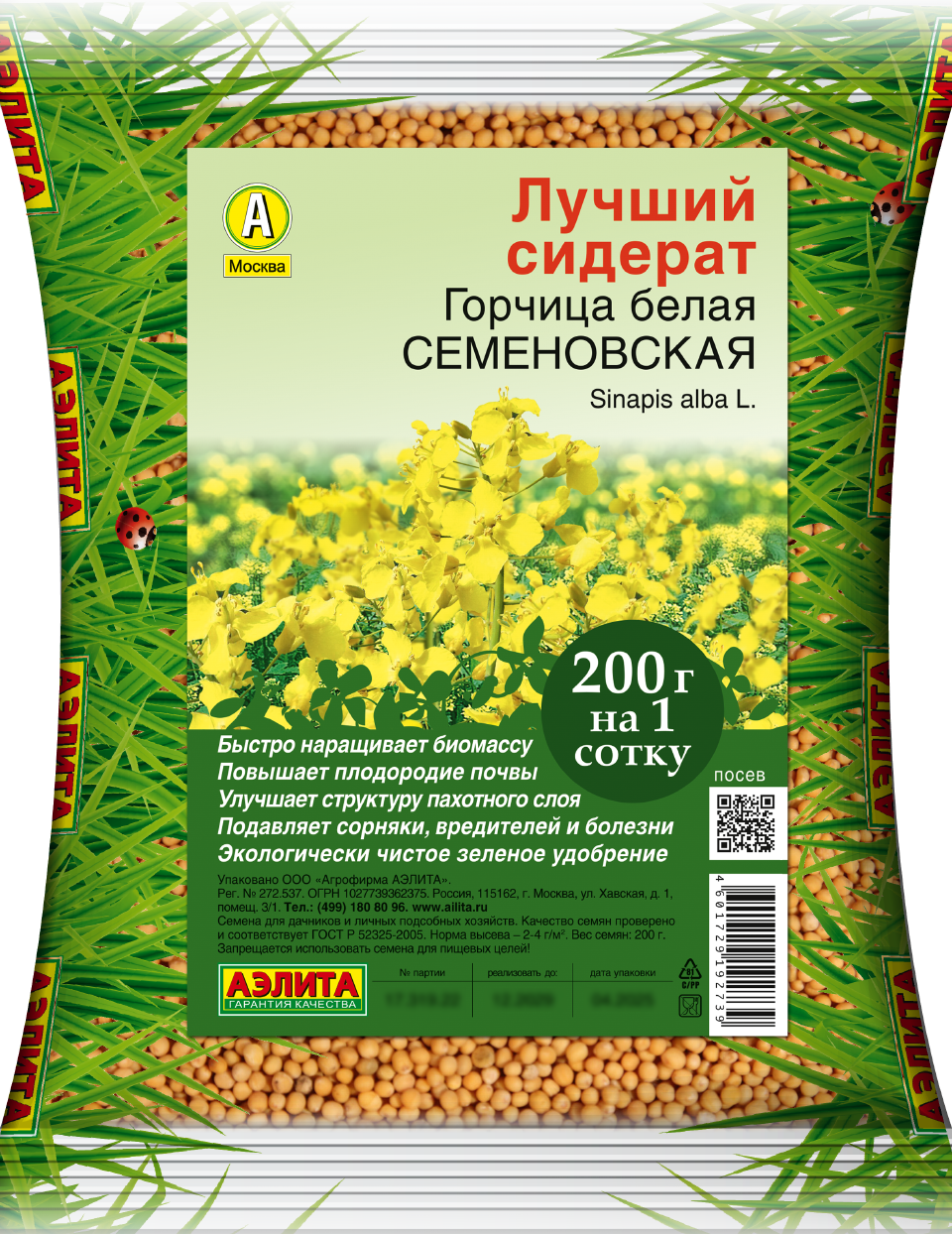 115 руб.Отличный медонос, привлекает большое количество пчел и шмелей. Одна из лучших культур для использования биомассы в качестве зеленого удобрения. При заделке в почву быстро разлагается и обогащает почву комплексом макро- и микроэлементов, очищает её от возбудителей болезней и вредителей, активно подавляет развитие сорняков. Эффективное, малозатратное, экологически чистое средство для повышения плодородия и улучшения структуры почвы.