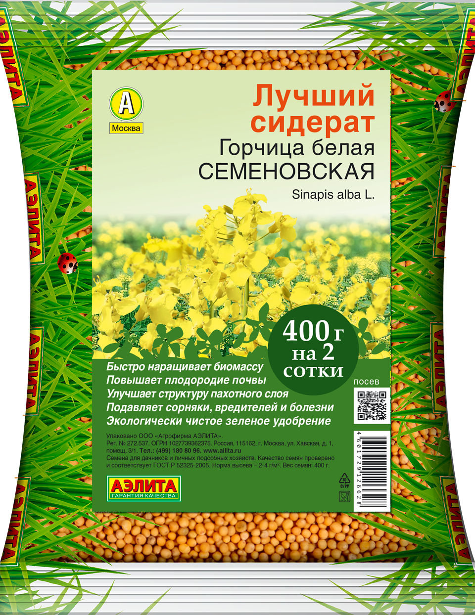 485 руб.Отличный медонос, привлекает большое количество пчел и шмелей. Одна из лучших культур для использования биомассы в качестве зеленого удобрения. При заделке в почву быстро разлагается и обогащает почву комплексом макро- и микроэлементов, очищает её от возбудителей болезней и вредителей, активно подавляет развитие сорняков. Эффективное, малозатратное, экологически чистое средство для повышения плодородия и улучшения структуры почвы.