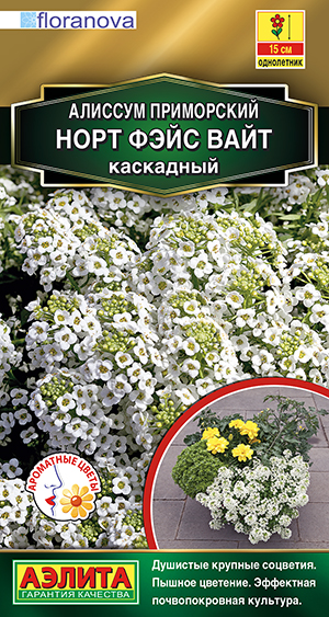 Непревзойденный крупноцветковый тетраплоидный алиссум от английской компании Floranova. Высокоустойчив к перепадам погодных условий. Кустики уникального каскадного типа, пышные, густые, высотой не более 13-15 см, в ширину распространяются до 30-40 см. Могут использоваться в качестве почвопокровной культуры. Эффектные ароматные цветки диаметром до 0,5 см собраны в белоснежные плотные соцветия. Сорт очень красиво смотрится в подвесных корзинах и садовых вазонах, подходит для украшения балконных контейнеров и ковровых посадок в цветниках различного типа.