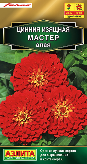 Крепкие приземистые кусты 25-30 см высотой поражают суперобильным, длительным цветением; каждый цветок держится на растении более месяца. Цветки густомахровые, очень крупные – Ш 10 см. Если не знать точно, что перед вами – сорт, то циннии группы МАСТЕР по внешнему виду легко принять за гибрид в первом поколении. Растения устойчивы к жаре, хорошо выдерживают самые высокие температуры. Один из лучших сортов для горшечного выращивания на солнечных балконах и террасах. В садовых цветниках подходит для бордюров, переднего края смешанных цветников и посадок сплошными массивами. Сорт будет интересен для озеленителей – профессионалов.