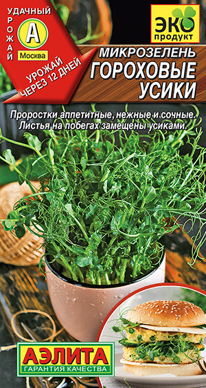 Эта необычная микрозелень состоит из усатого (безлисточкового) типа гороха. Отличается замещением листочков дополнительными усами. Проростки гороха, в отличие от семян, – пища, которая легко усваивается организмом. Благодаря наличию минералов, микроэлементов, а также витаминов группы В – это отличный ингредиент диетических и вегетарианских блюд. Микрозелень обладает сочным, сладковатым вкусом. Употребляется в свежем виде, отлично подходит для добавления в салаты, для украшения блюд и десертов. Состав: горох овощной (Pisum sativum L.) Ползунок®.