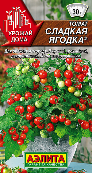 Низкорослый сорт с очень ранним и обильным плодоношением. Первые плоды собирают уже на 85-95 день после всходов. Для открытого грунта и пленочных укрытий. Благодаря декоративному виду и небольшой высоте кустов (она не превышает 30 см!), идеально подходит для выращивания в горшках. Растения детерминантные, штамбовые, в формировании и пасынковании не нуждаются. Томатики массой около 10 г, сочные, ароматные, сладкого десертного вкуса. Их можно есть прямо с куста, добавить в салаты, законсервировать целиком. Сорт устойчив ко многим болезням культуры и успевает отдать урожай до наступления фитофтороза.