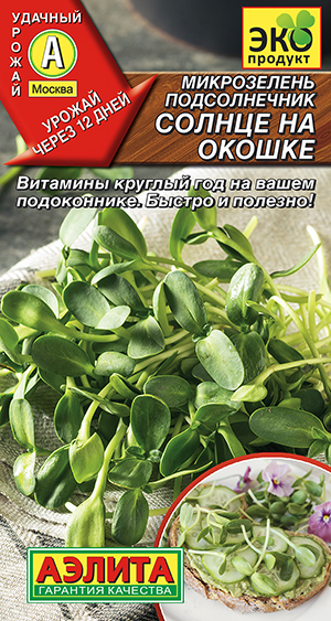 Яркая и аппетитная микрозелень подсолнечника – изысканный и ценный подарок природы. В молодых ростках содержится огромное количество полезных микроэлементов, витаминов и аминокислот. Регулярное употребление в пищу способствует общему оздоровлению организма и похудению. Микрозелень обладает ярко выраженным салатным вкусом с едва уловимым масляным послевкусием. Свежесрезанные ростки используют в салатах, для приготовления бутербродов, добавляют в овощной фреш.