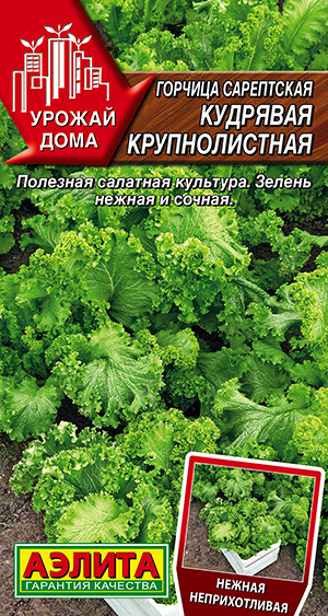 22.15 руб.Неприхотливая и очень полезная салатная культура, которая может расти не только на грядках, но и в домашних условиях на подоконнике. Сорт раннеспелый, через 20-25 дней после всходов формируется розетка с красивыми, сочными и нежными листьями. Зелень обладает приятным горчичным вкусом, содержит большое количество витаминов и минералов. Используется в свежем виде для салатов и бутербродов, а также для украшения блюд.