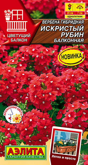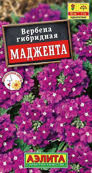Крупноцветковая кустовая вербена для ландшафтного и балконного озеленения. Растения из серии «Тускани» выравненные по габитусу, очень компактные, прекрасно ветвятся и дружно зацветают. Высота густых кустиков составляет около 20-25 см, диаметр душистых соцветий достигает 6-8 см. Вербена — культура длинного дня, 12–14-часовой световой день улучшает качество ее цветения. При соблюдении агротехники от посева до появления первых цветков проходит 12-14 недель. Каждое распустившееся соцветие надолго сохраняет декоративный вид. Удивительные окраски этой вербены, легко выращиваемой из семян, привлекают в сад полезных насекомых-опылителей и радуют взор вплоть до устойчивых заморозков.
