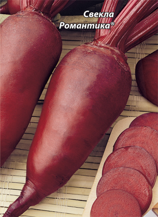 Свекла Романтика® – среднеспелый сорт универсального назначения. От массовых всходов до технической спелости период 105-115 дней. Корнеплод конической формы, опробковение головки слабое. Имеет красивый темный цвет мякоти, кольца выражены слабо. Масса корнеплода 230-330 г, вкусовые качества отличные, урожайность до 5 кг/м2.